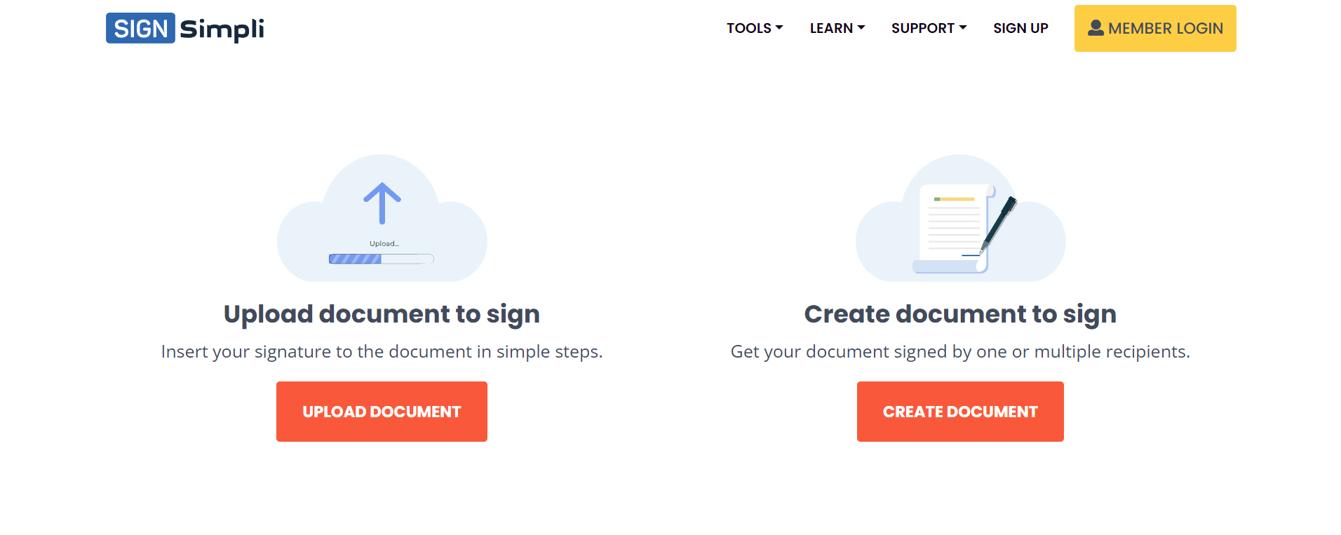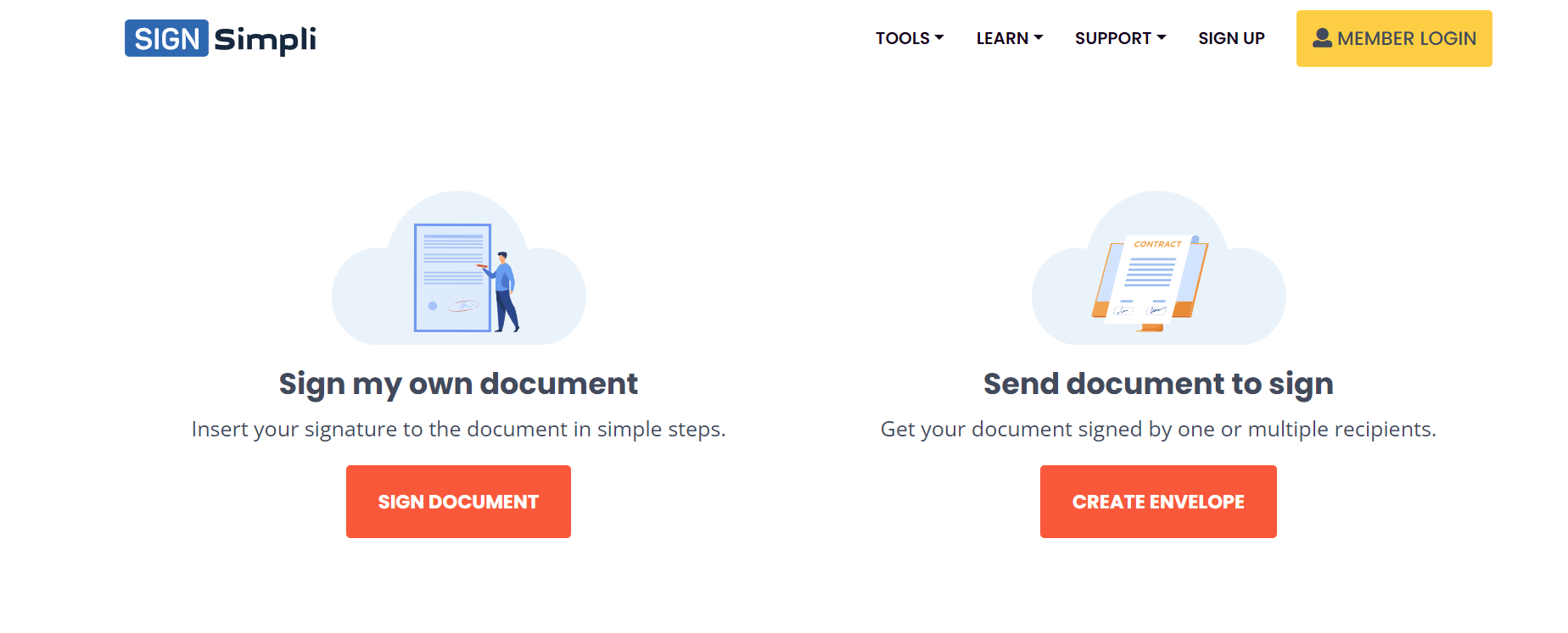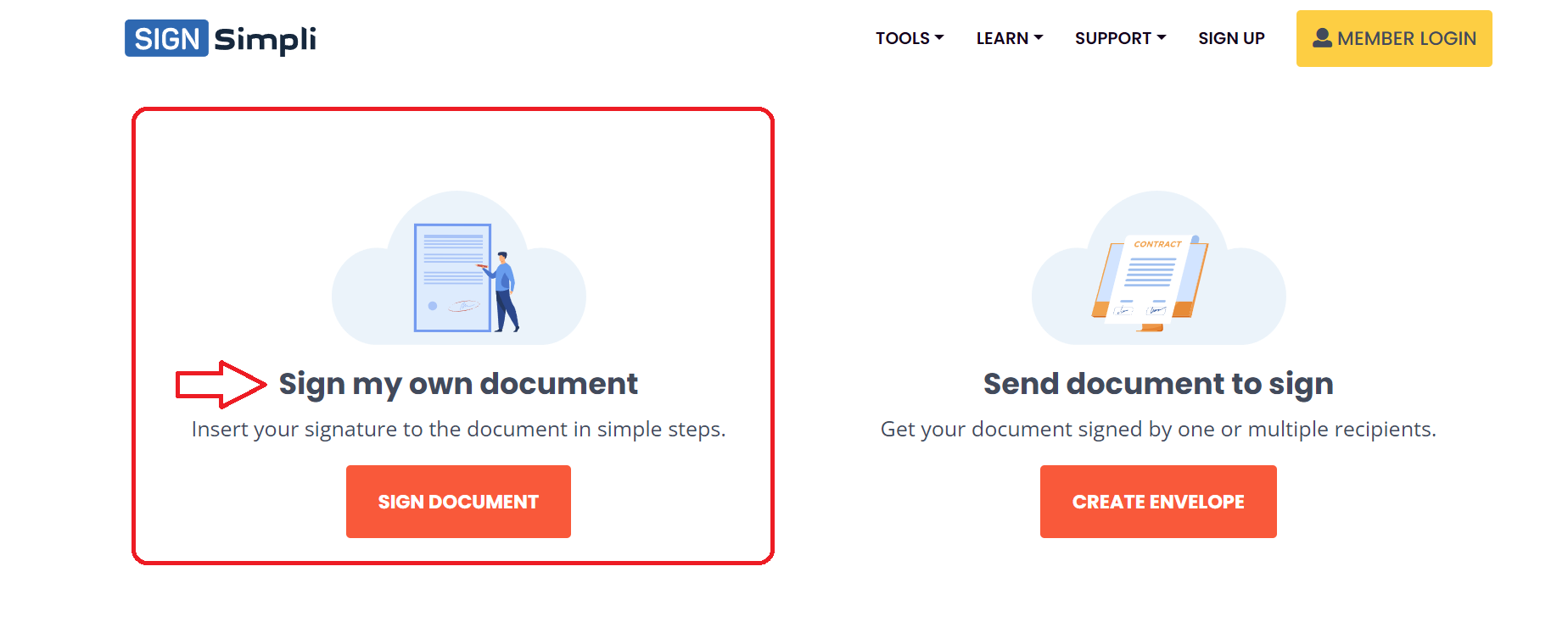 Go to the homepage of https://SignSimpli.com/ and select "Let’s Start Signing".