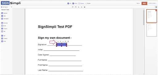 Creating a document for signature to sign is one of the simplest and best ways SignSimpli is used, this is one of the main features used in SignSimpli.