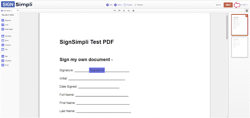 - Once all the fields are placed on the document then click on ‘Next’ to send the document.