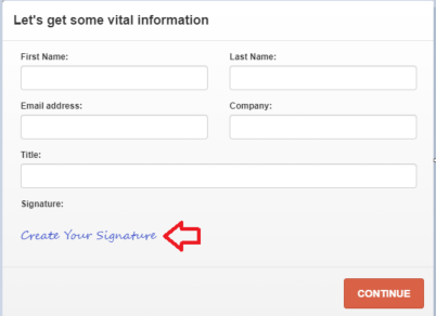 - Next, fill in the few Vital information fields and then click on ‘Create Your Signature’. After your signature is created then select ‘Continue’ to begin sending your document for a signature.