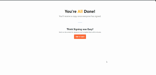 - On the last screen that appears this will notify the user the document has been completed and sent.
