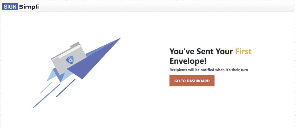 - The last screen that appears is notifying a Sender that the document has been sent.