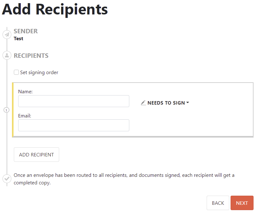 - On the next screen that appears ‘Add Recipients’ information and then click on ‘Next’.